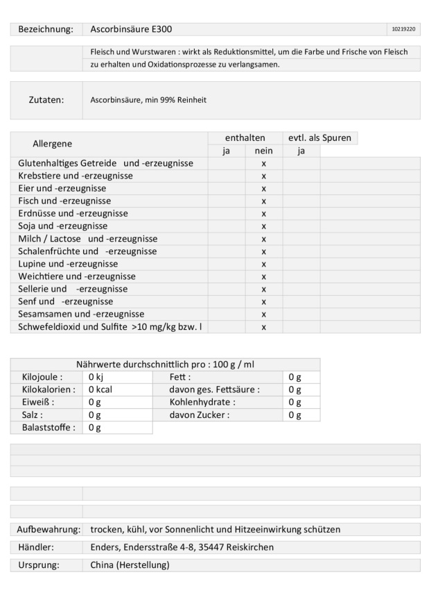 Kennzeichnung nach L.M.K.V. : L-Ascorbinsäure