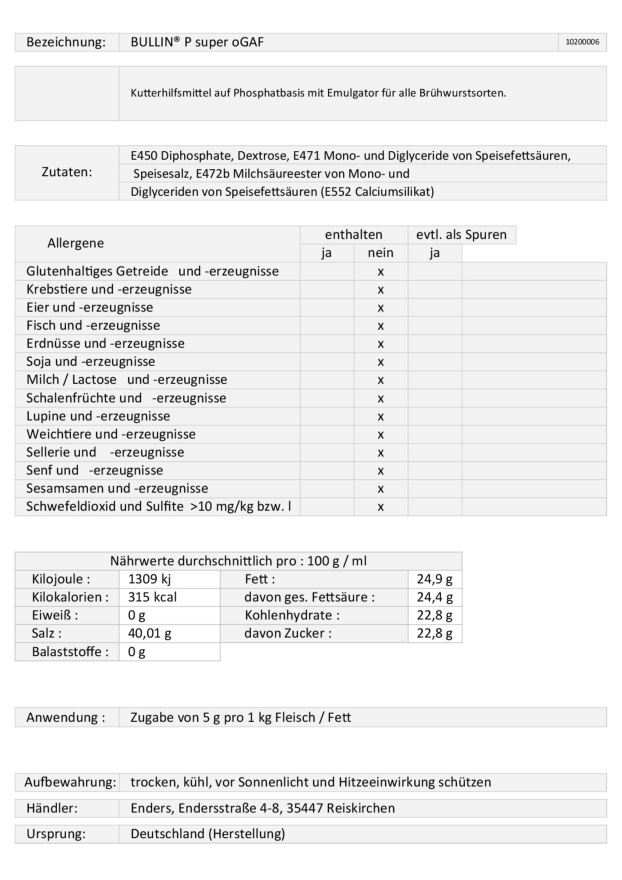 Bullin P Super von Van Hees ist ein Kutterhilfmittel auf Phosphatbasis mit Emulgator für alle Brühwurstsorten.