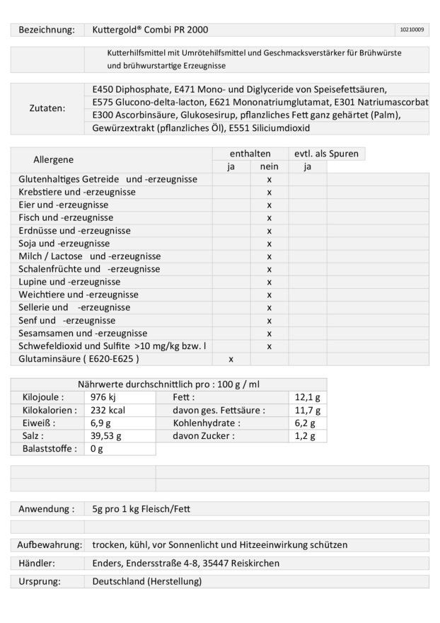 Zugabe : bis 5 g pro 1kg Fleisch/Fett