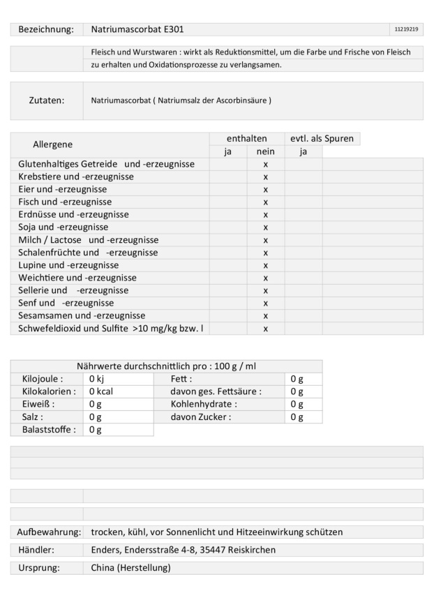Produktinformationen "Natriumascorbat 1kg E301"