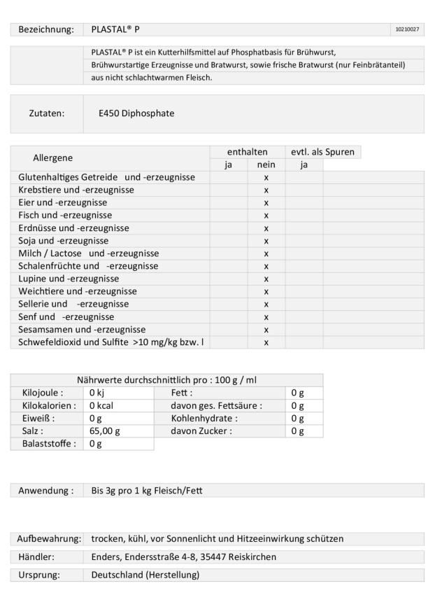 Kutterhilfsmittel auf Phosphatbasis für Brühwurst, brühwurstartige Erzeugnisse und